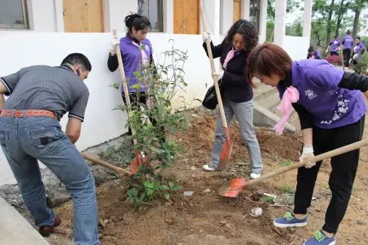 接着,志愿者们带着爱心礼物和树苗来到了无量寿安养院,看望慰问了孤寡老人并进行植树活动。